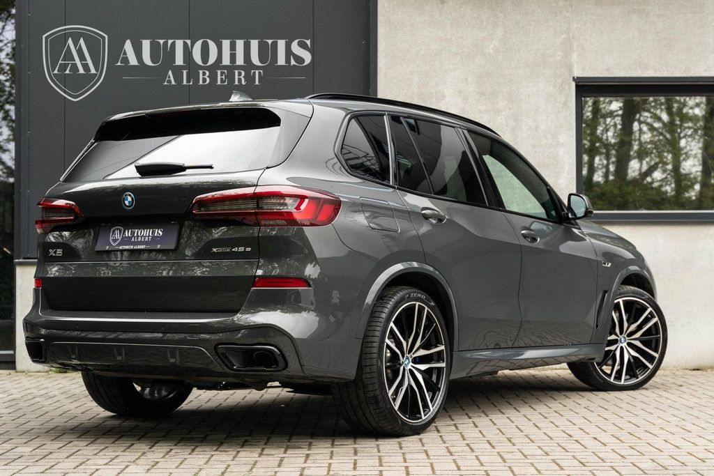 BMW X5 xDrive45e M Sport, 1e eigenaar, dealer onderhouden, Comfortstoelen in zwart leder (BMW Individual), Zwarte hemelbekleding, Sensatec dashboard, Achteruitrijcamera, Stoelverwarming voor en achter, Elektrisch verstelbare stoelen met geheugenfunctie, Panoramisch schuif-/kantel glazen dak, Head-up Display, BMW Laserlicht met Shadow Line koplampen, High Executive pakket (Innovatiepakket), Soft-close Automatic voor de deuren, Luchtvering op voor- en achteras, 22'' lichtmetalen M velgen, Comforttoegang (keyless), Sfeerverlichting, DAB tuner, Driving Assistant, BMW Display Key, Parkeerhulpsysteem, M Sportremsysteem, Shadow Line hoogglans exterieur, M aerodynamiek pakket en nog veel meer.....
