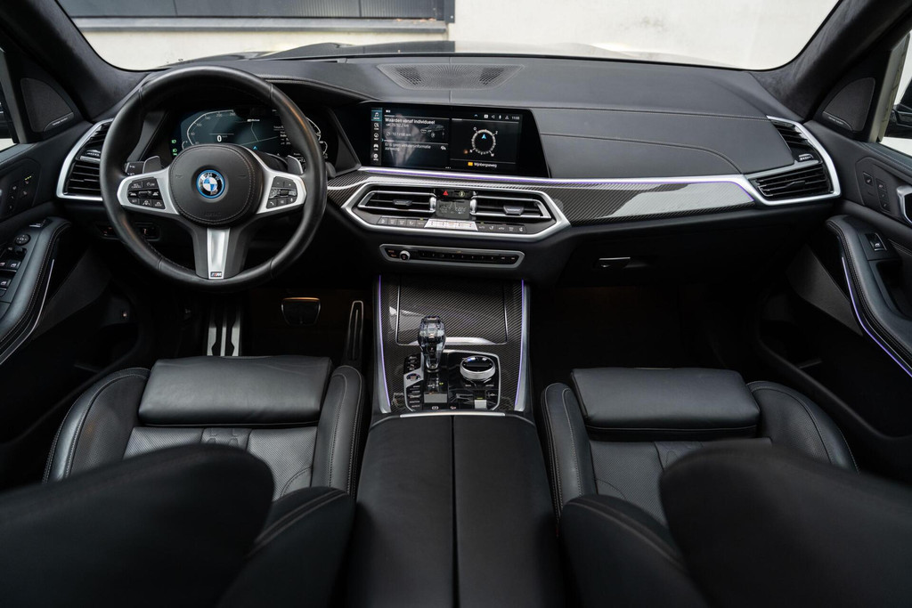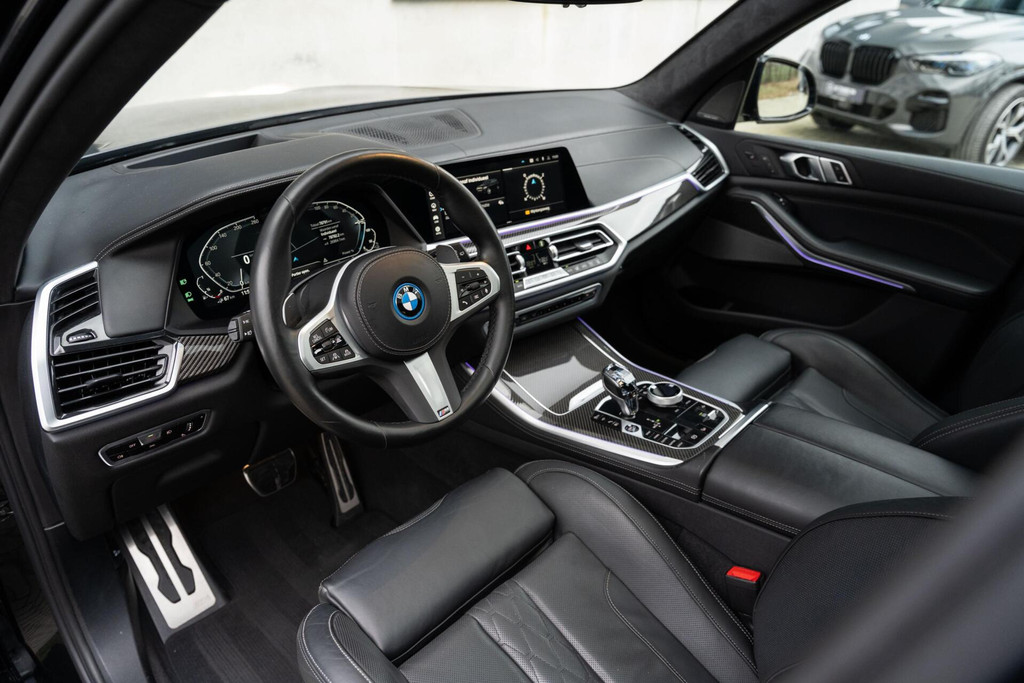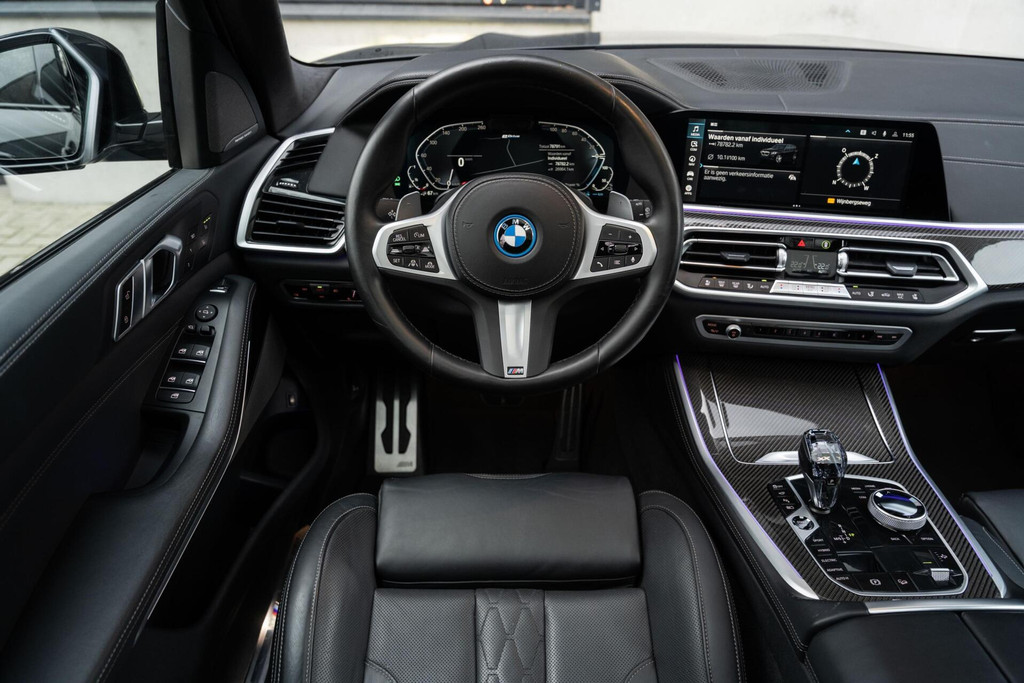 BMW X5 xDrive45e M-Sport 1e eigenaar, dealer onderhouden, M Performance Seats in Merino leder, Carbon interieurlijsten en spiegelkappen, Alcantara hemel, Rear Seat Entertainment, Massagestoelen voor, Panoramadak, Inklapbare trekhaak, Shadow line + koplampen, 22'' velgen, Stoelventilatie voor, 360 camera, Parking Assistant Plus, Zwart Merino lederen comfortseats, Individual Leder dashboard, Stoelverwarming voor en achter, Stuurverwarming, Head up Display, Keyless Entry & GO, Memory, Blauwe M Sport remklauwen, M sportgordels, Sfeerverlichting, BMW Laserlicht, Driving Assistant Proffesional, ACC (Adaptive Cruise Control), Spiegelpakket, Draadloos oplaadvak, DAB Tuner, Zwarte hemel en nog veel meer...