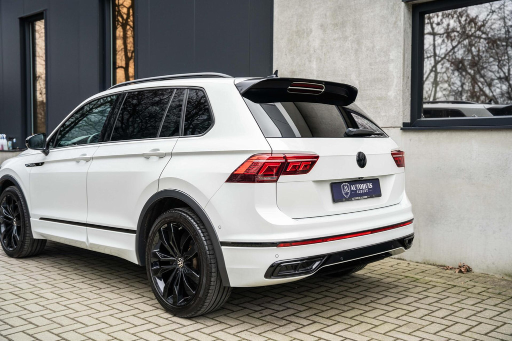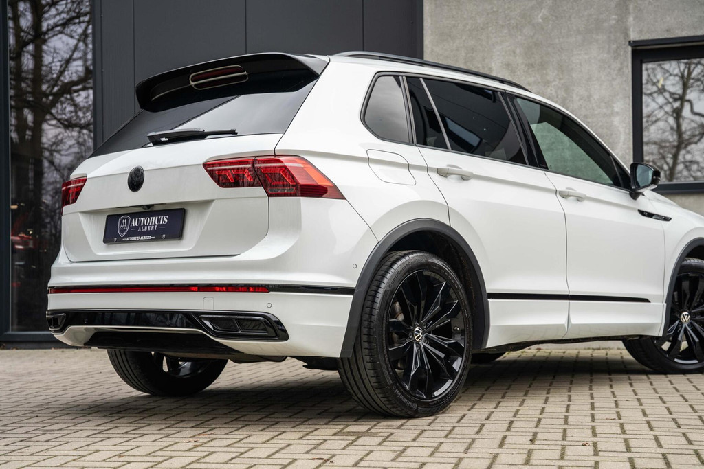Volkswagen Tiguan 1.5 TSI R-Line Black Style Vienna Leder R stoelen, 20'' Suzuka, ACC, Panoramadak, Memory, Inklapbare trekhaak, DSG, Virtual Cockpit, IQ Light MATRIX, Adaptive Chassis Control DCC, Stoelverwarming voor en achter, Automatisch inparkeren, Head up Display, Achteruitrijcamera en nog veel meer...