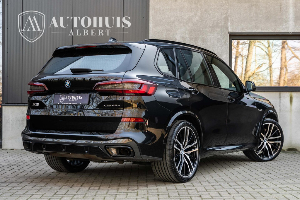 BMW X5 xDrive45e M Sport 1e eigenaar, dealer onderhouden, Massagestoelen, Carbon interieurlijsten, 22'' M Sportvelgen, Panoramadak, Inklapbare trekhaak, Stoelventilatie voor, Stoelverwarming voor, 360 camera, Achterasbesturing, Head up Display, BMW Laserlicht met shadow koplampen, BMW Gesture Control, Draadloze telefoonlader, BMW HiFi, Head up Display, Parking Assistant Plus, Driving Assistant Professional, Active Guard Plus, Sfeerverlichting, Spiegelpakket, Climate Control 4 zones, Memory, Zonneschermen achter, Luchtvering en nog veel meer...