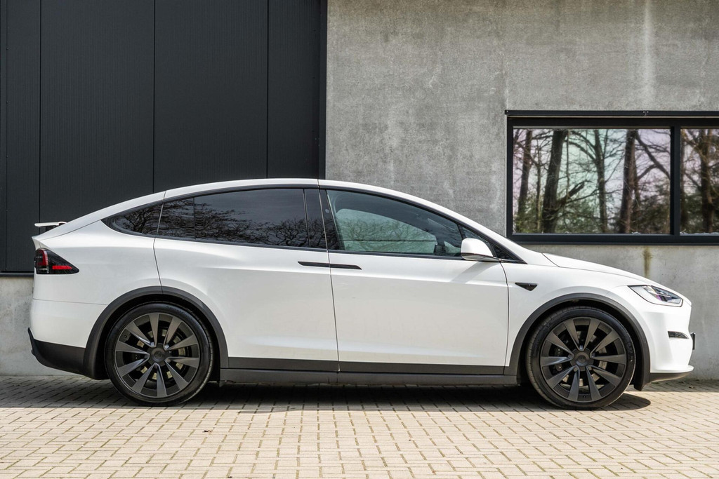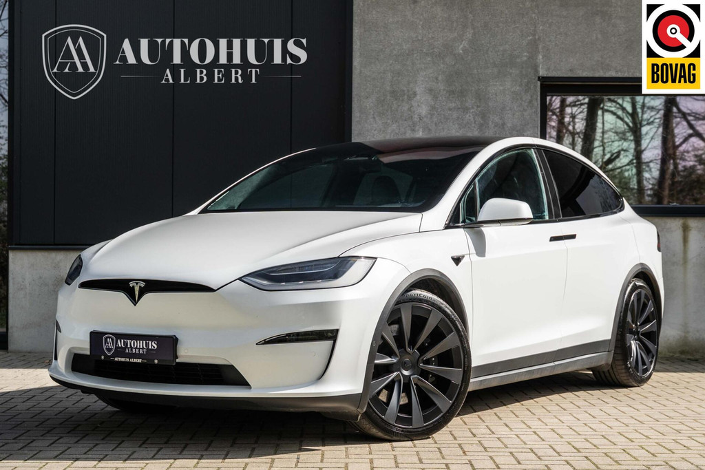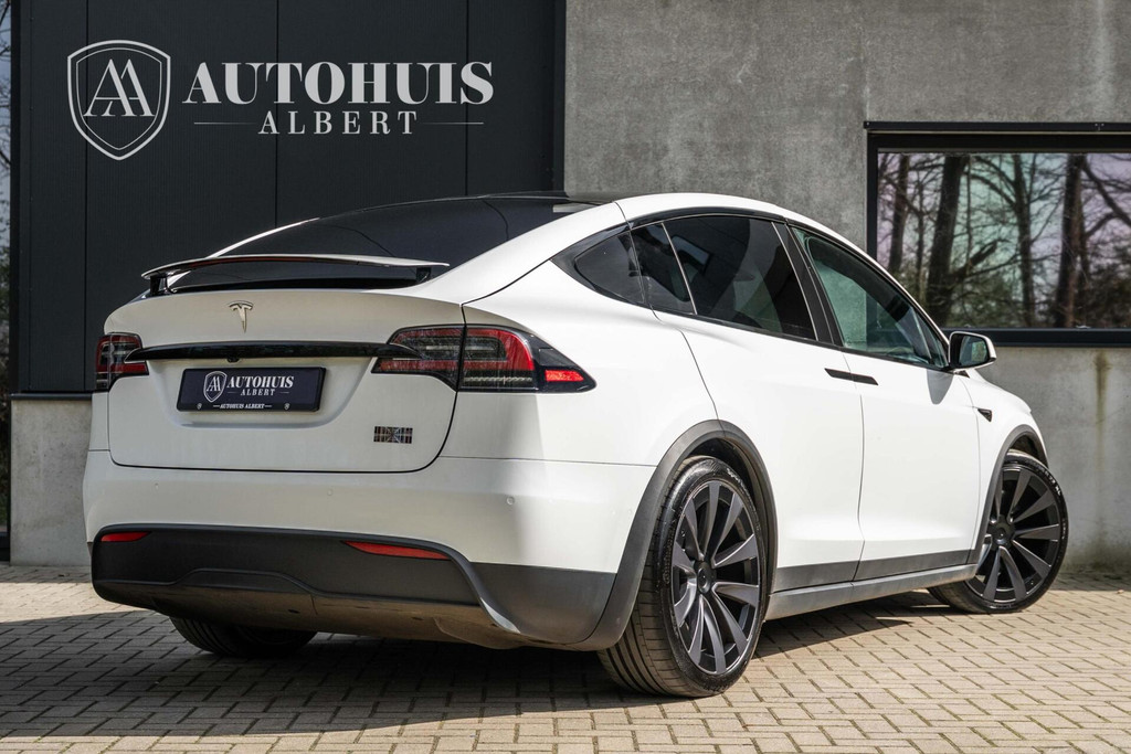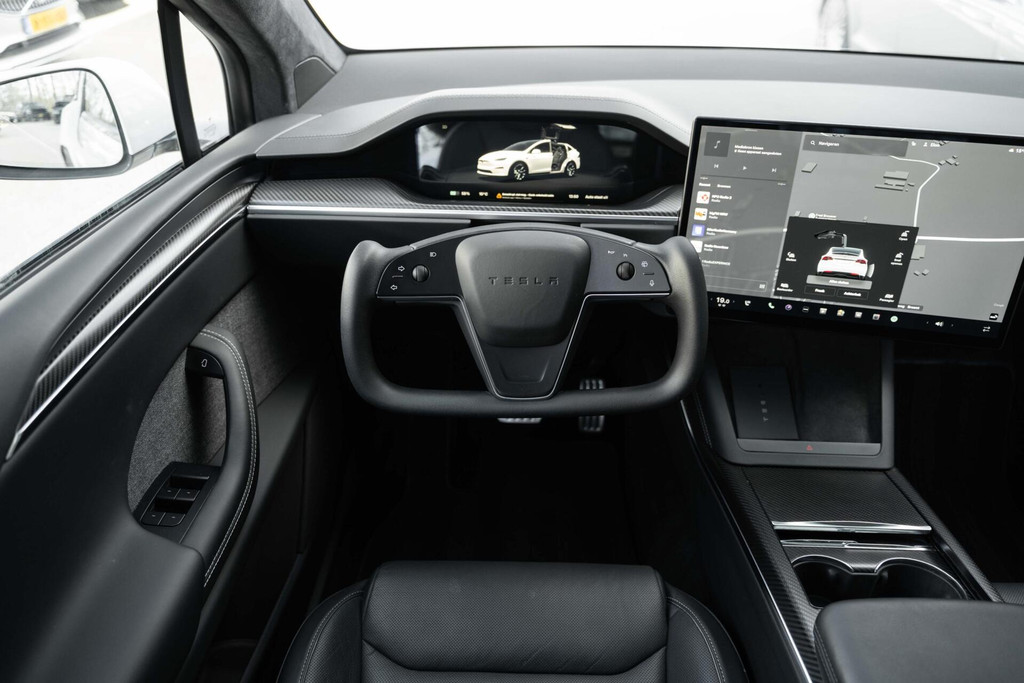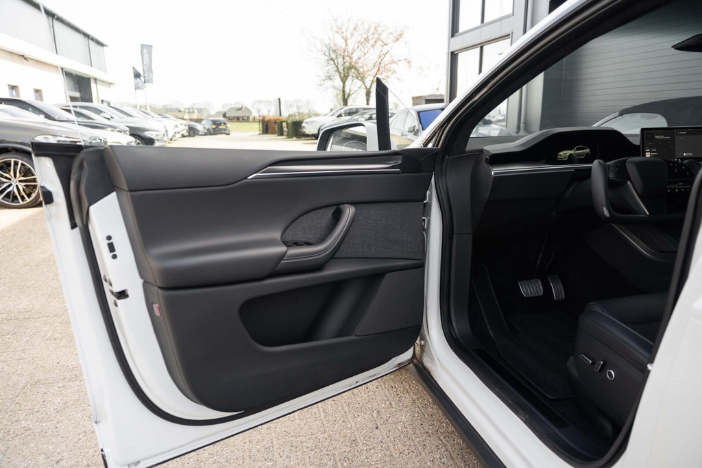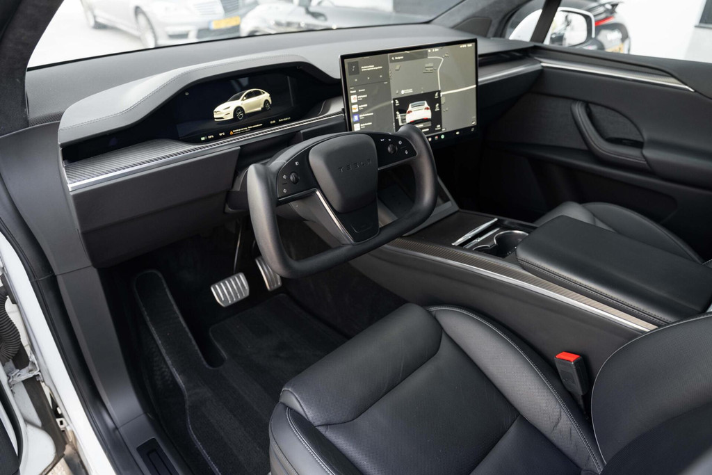 Tesla Model X Plaid met 1020pk, 6-Zits interieur met Carbon afwerking, Stoelverwarming en ventilatie op de voorstoelen, Stoelverwarming op alle zitplaatsen, Elektrisch verstelbare voorstoelen met Memoryfunctie, Panoramische voorruit, 360 graden camera-systeem, Premium Audio met 22 luidsprekers, 22'' Turbine lichtmetalen velgen, Adaptieve luchtvering, Trekhaak, Yoke stuurwiel, Keyless Entry via smartphone, Tri-Zone Climate Control, Entertainment-scherm achterin, Falcon Wing achterdeuren en nog veel meer.....